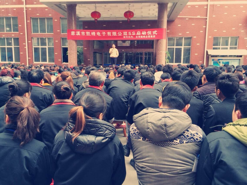 In March 2014, Cixi Kai Feng Electronics Co., Ltd. hired famous Taiwan MBA group to our guidance of 5S activities, and lead the audience more than 400 employees to join 5S to start the general assembly.