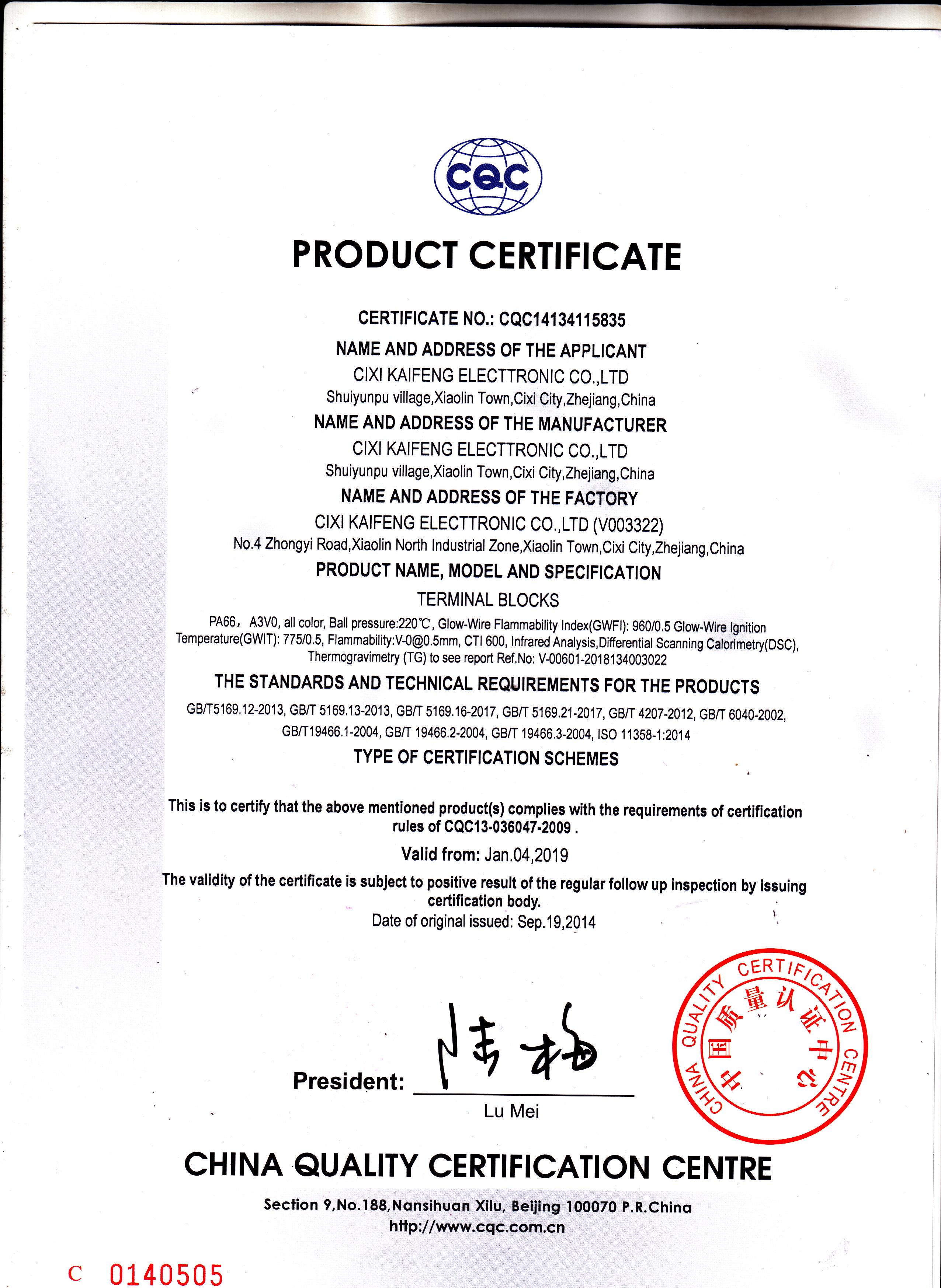 CQC certification: Manufacturing conforms to the standards of China Quality Certification Center