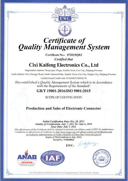 IECQ certification: Manufacture conforms to the standards of electronic components quality assessment system of the International Electrotechnical Commission