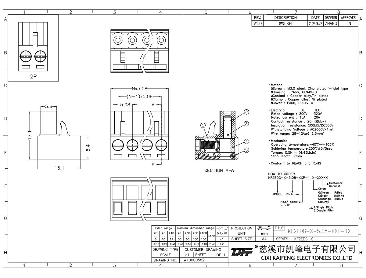 MATERIAL:M3.0 Steel Galvanized contact: Phosphor bronzePin header:-Housing: PA66,UL94V-0ElectricalULIECRated voltage300V 320V Rated current15A20AContact resistance20mΩInsulation resistance500MΩ/DC500VWithstanding voltage AC2000V/1minWire range28-12AWG 2.5㎜2MechanicalTemp.rang-40℃~+105℃ Max.soldering+250℃,5se