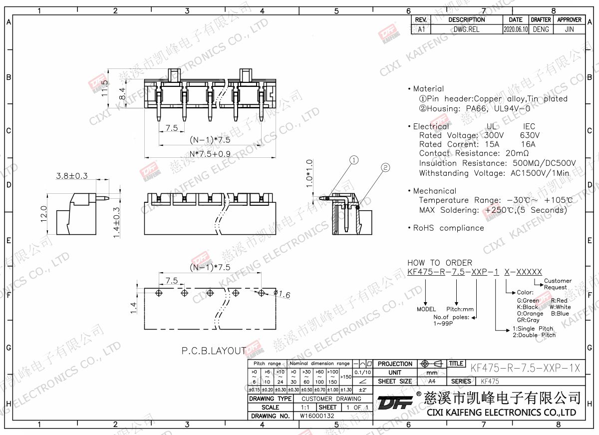 MCS Connector KF475-R-7.50/KF478-R welding pin socket