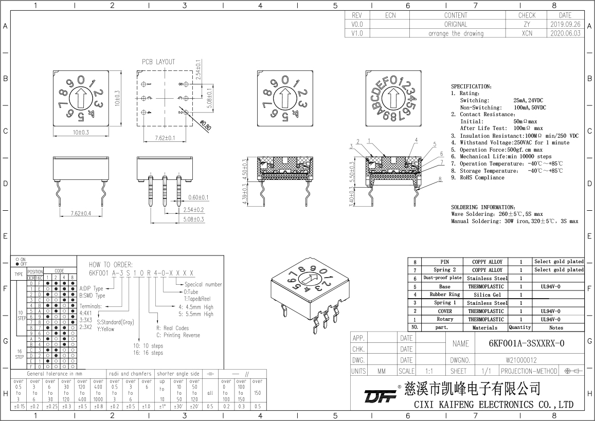 Dip Switch 6KF001A-3S10R4-0
