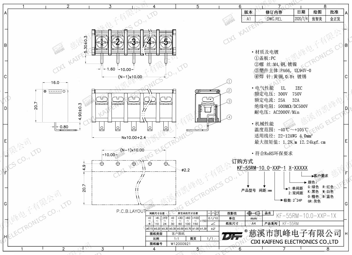 材質(zhì)電鍍:M4.0 鋼,鍍鎳端子:黃銅,0.8t 鍍鎳塑件: PA66,UL94V-0電氣性能ULIEC額定電壓300V 750V 額定電流25A32A絕緣電阻500MΩ/DC500V耐電壓AC2000V/1min使用線徑22-12AWG 4.0mm2機(jī)械性能溫度范圍-40℃~+105℃ 扭矩1.2N.m 10.53Lb.in