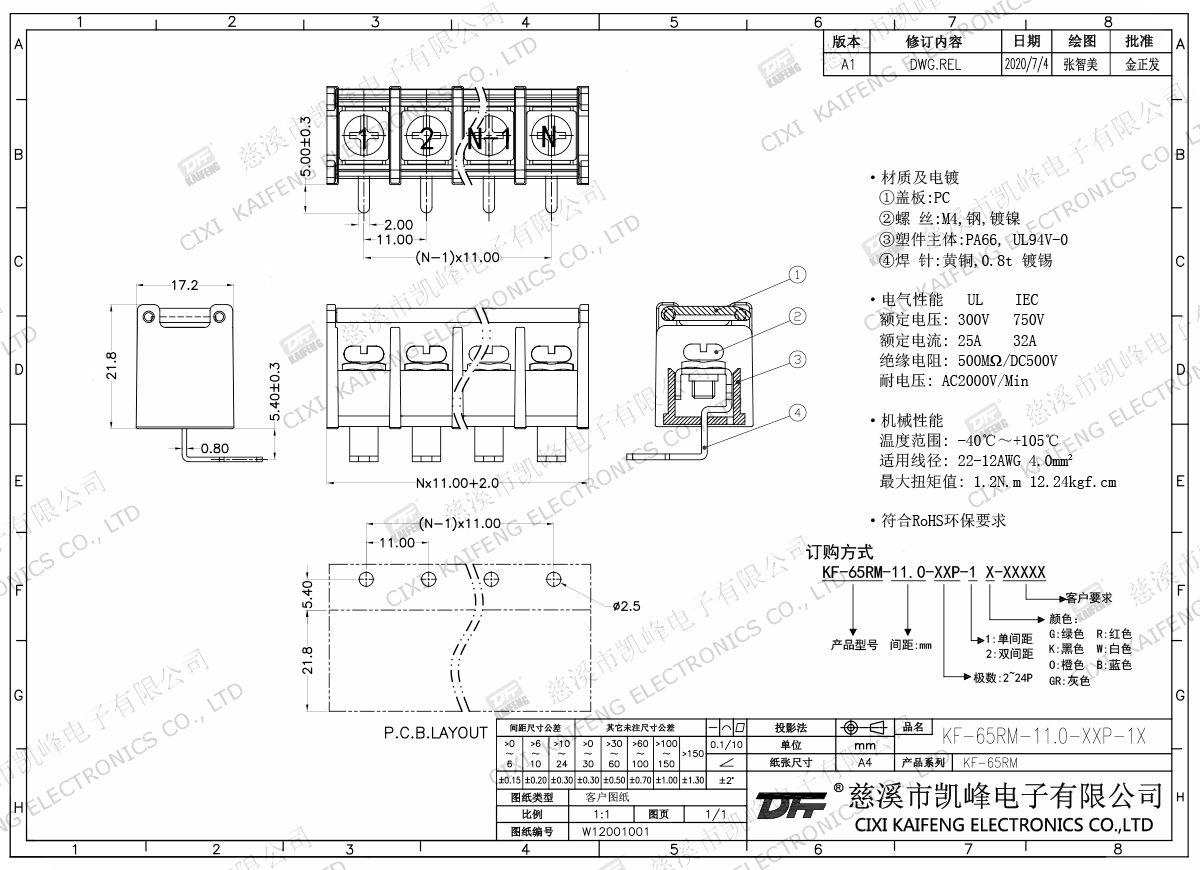 柵欄式接線端子 KF-65RM-11.00mm