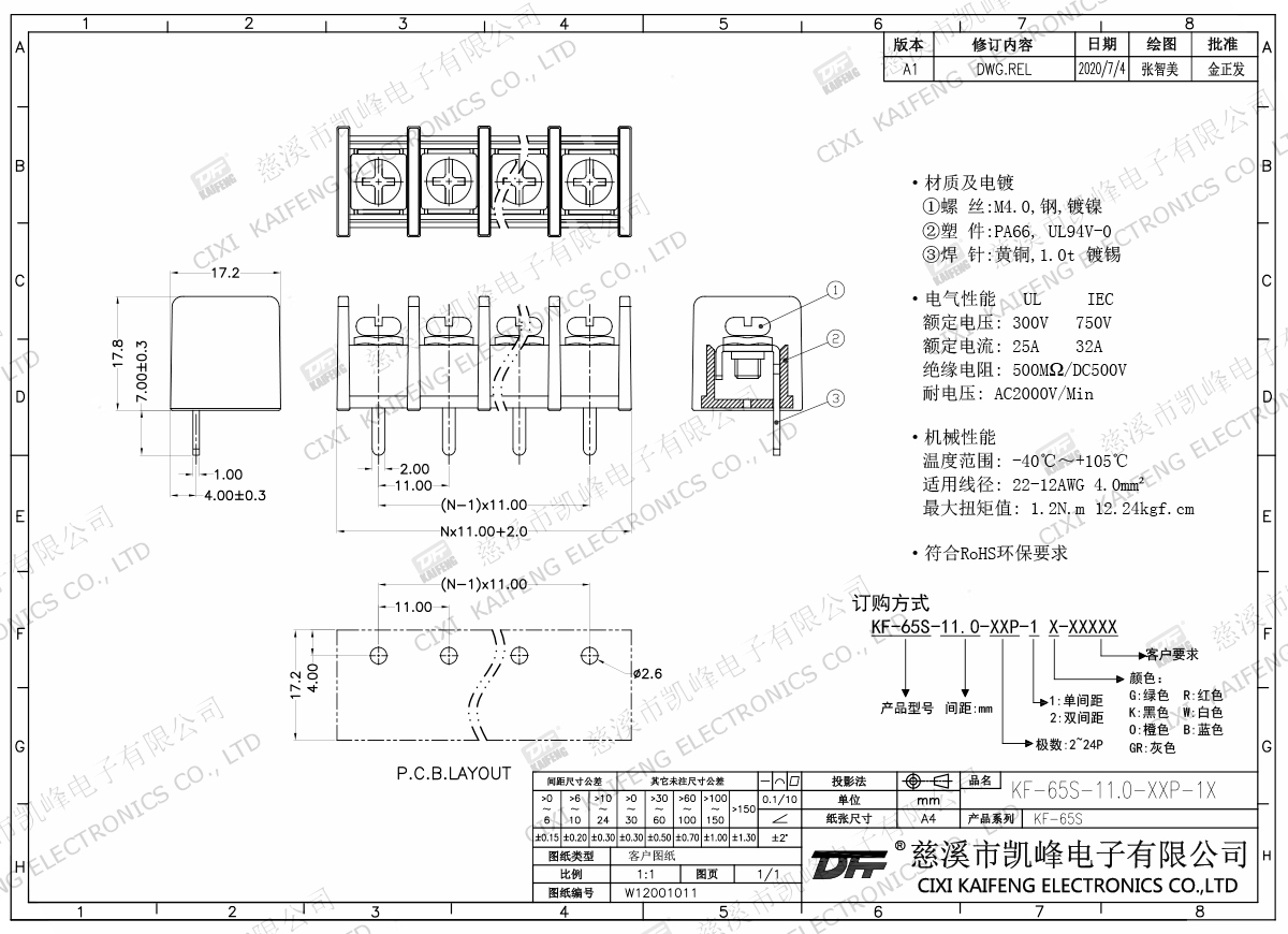 材質(zhì)電鍍:M4.0 鋼,鍍鎳端子:黃銅,0.8t 鍍鎳塑件: PA66,UL94V-0電氣性能ULIEC額定電壓300V 750V 額定電流30A32A絕緣電阻500MΩ/DC500V耐電壓AC2000V/1min使用線徑22-12AWG 4.0mm2機(jī)械性能溫度范圍-40℃~+105℃ 扭矩1.2N.m 10.53Lb.in