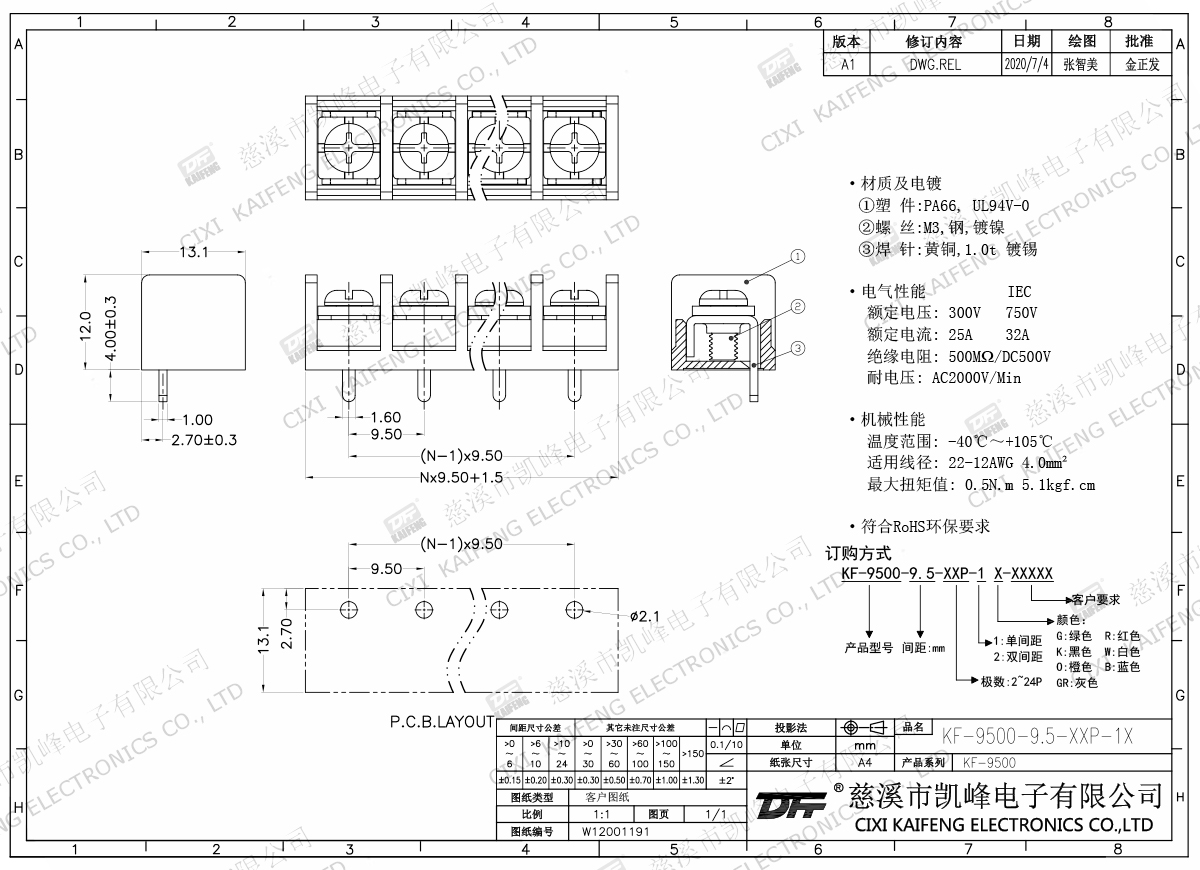 柵欄式接線端子 材質(zhì)電鍍:M3.0 鋼,鍍鎳端子:黃銅,0.7t 鍍鎳塑件: PA66,UL94V-0電氣性能ULIEC額定電壓300V 750V 額定電流25A32A絕緣電阻500MΩ/DC500V耐電壓AC2000V/1min使用線徑22-14AWG 4.0mm2機(jī)械性能溫度范圍-40℃~+105℃ 扭矩0.5N.m 4.4Lb.in