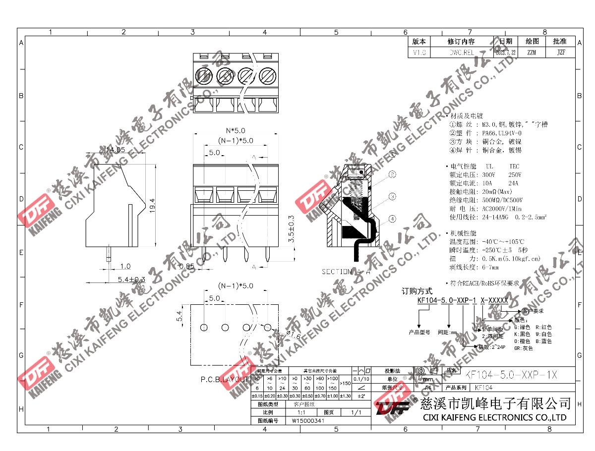 固定式式連接端子 材質(zhì)電鍍:①螺 絲 : M3.0 鋼,鍍鋅,"-"字槽 ②塑 件 : PA66, UL94V-0 ③方 盒 :黃銅,鍍鎳 ④焊 針 : 黃銅, 鍍錫 &nb