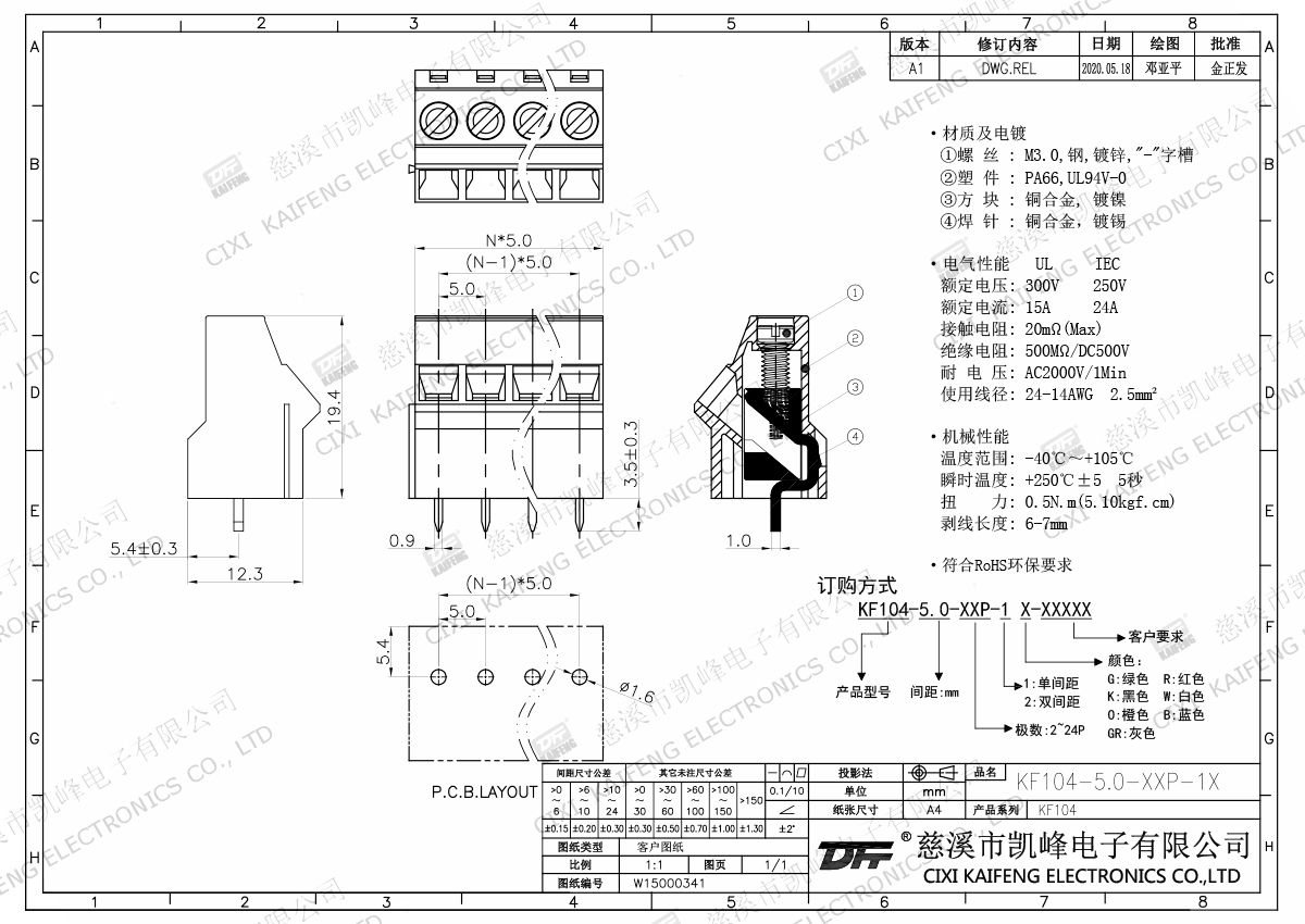 固定式式連接端子 材質(zhì)電鍍:①螺 絲 : M3.0 鋼,鍍鋅,"-"字槽 ②塑 件 : PA66, UL94V-0 ③方 盒 :黃銅,鍍鎳 ④焊 針 : 黃銅, 鍍錫 &nb