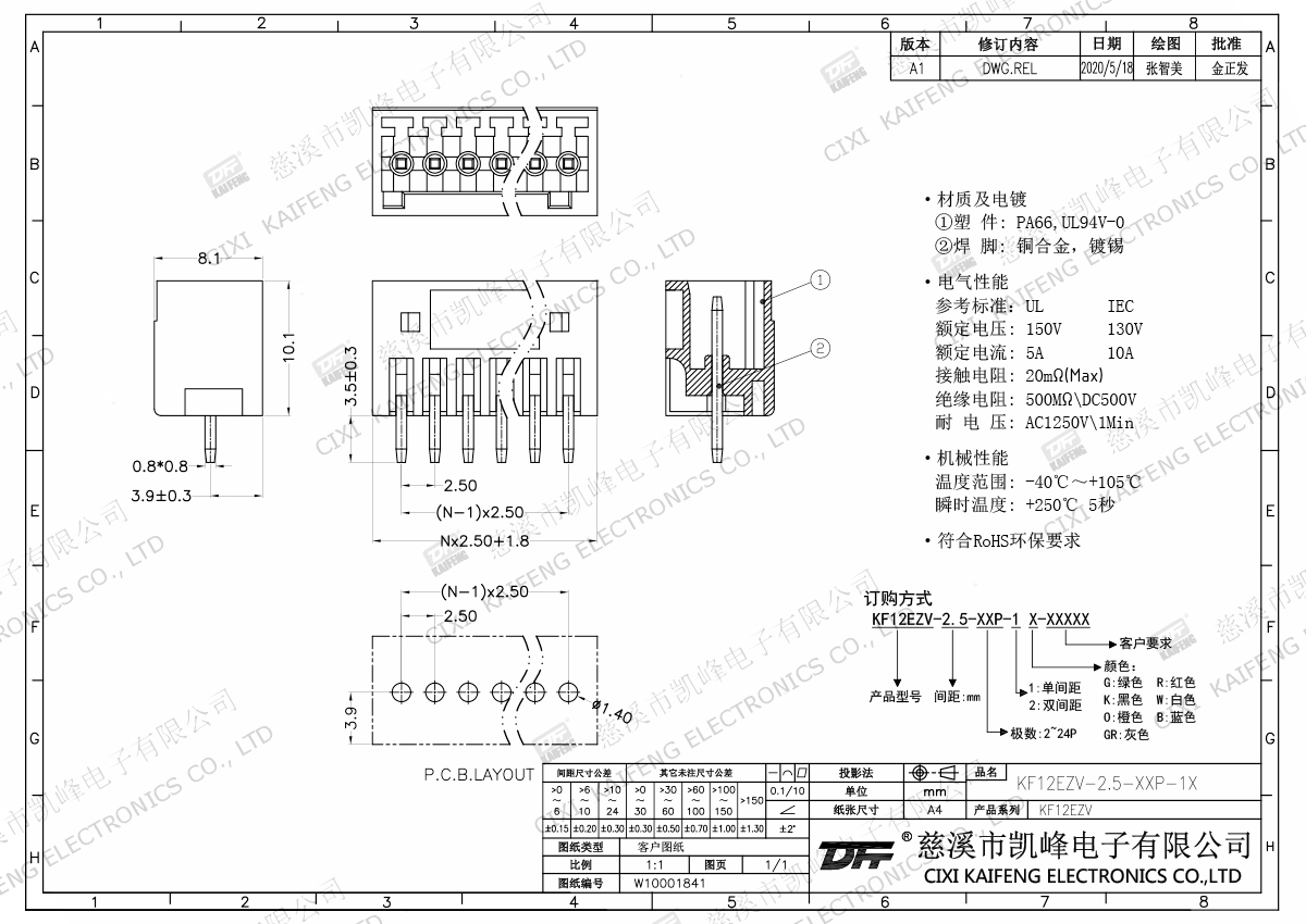 材質(zhì)電鍍:觸點(diǎn): -焊針: 黃銅,鍍錫塑件: PA66,UL94V-0電氣性能ULIEC額定電壓150V 130V 額定電流5A10A接觸電阻20mΩ絕緣電阻500MΩ/DC500V耐電壓AC1250V/1min使用線徑-機(jī)械性能溫度范圍-40℃~+105℃ 瞬時(shí)溫度+250℃,5sec扭矩-剝線長(zhǎng)度-