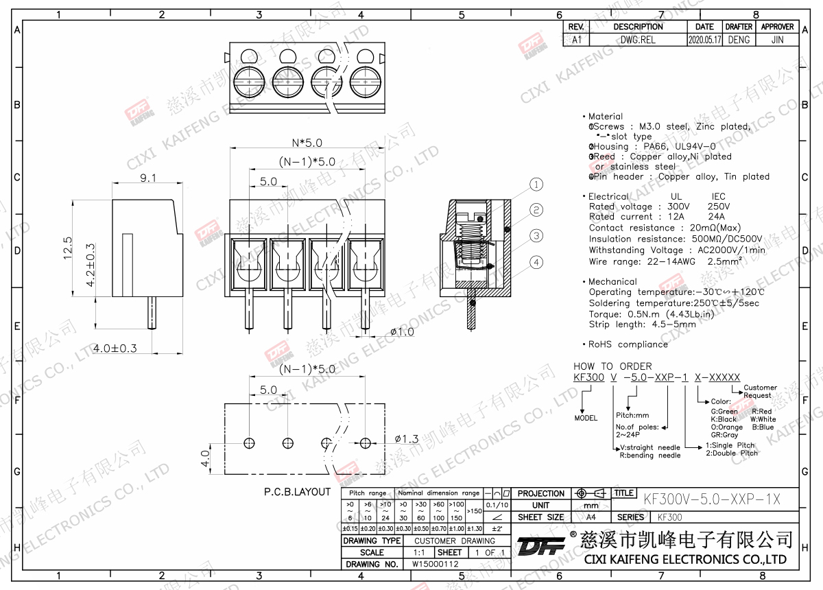 Material:①Screws : M3.0 Steel Zinc plated,"-"slot type ②Housing : PA66, UL94V- 0 ③Reed : Phosphor bronzeNi platedorStainless steel ④Pin header