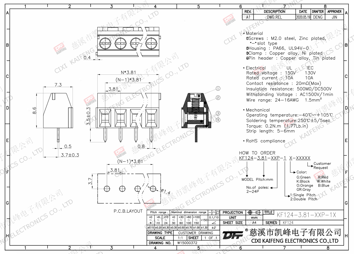 Material:①Screws : M2.0 Steel Zinc plated,"-"slot type ②Housing : PA66, UL94V-0 ③Square box :Brass,Ni plated ④Pin header : Brass, Tin plated &nb