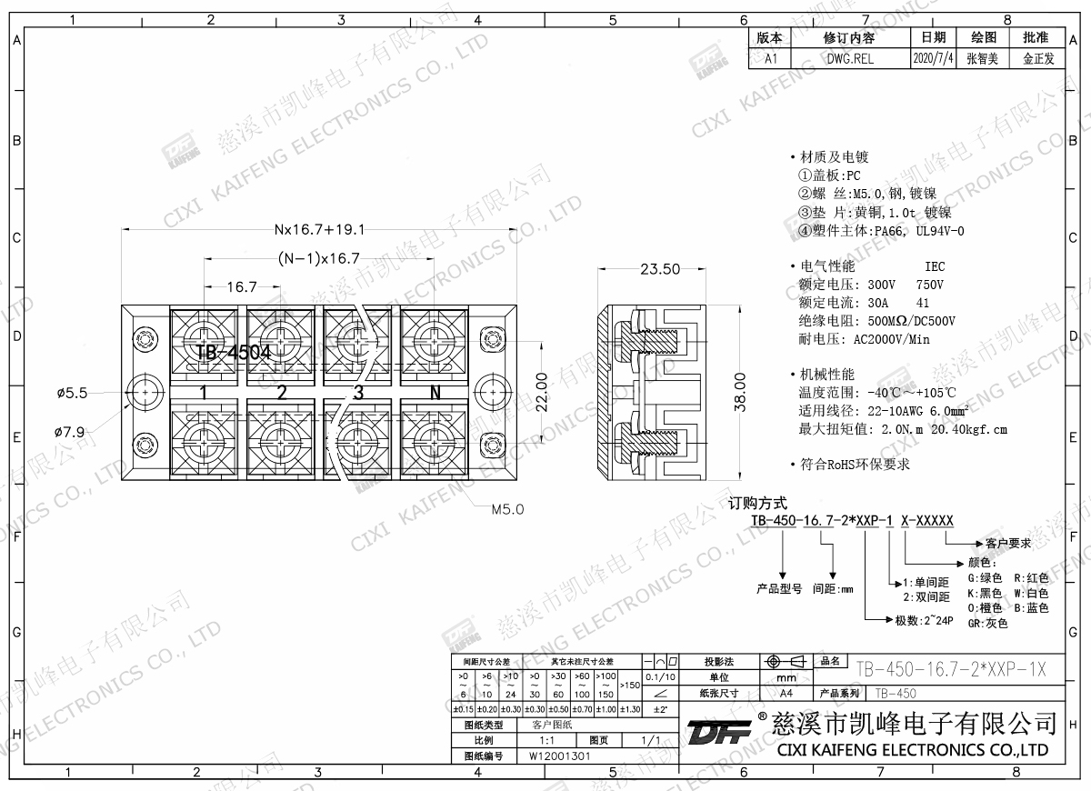 Barrier Terminal Block TB-450-16.7mm