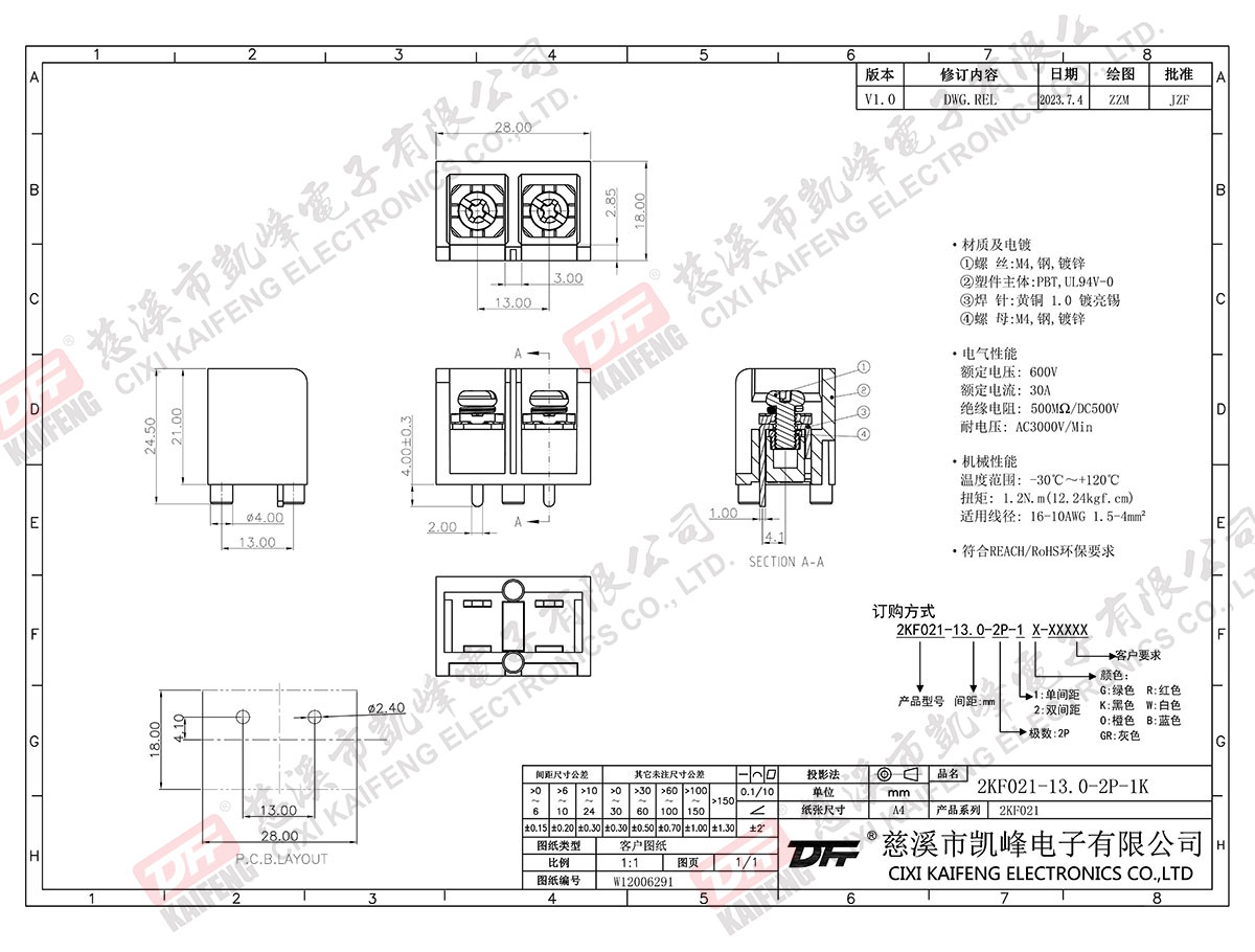 柵欄式接線端子 2KF021-13.0mm