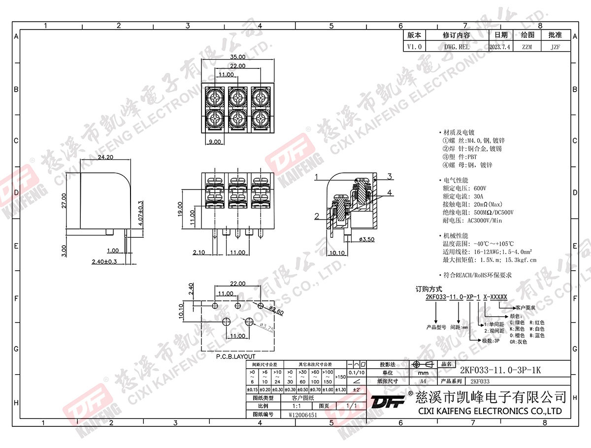 柵欄式接線(xiàn)端子 2KF033-11.0mm